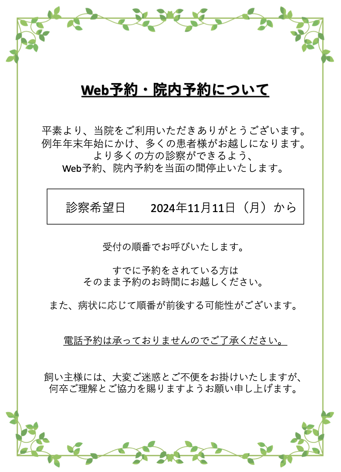※必ず事前にご連絡ください。 ※別途時間外料金発生します