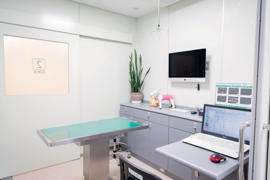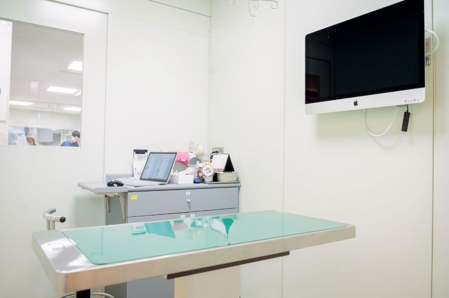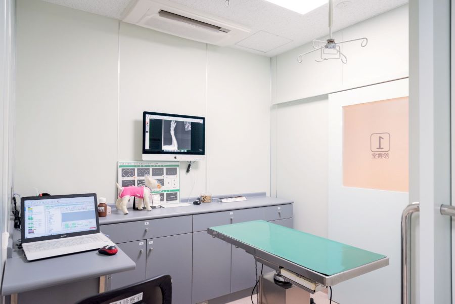 犬・猫それぞれに3つずつの診察室をご用意しています。こちらは犬用の診察室です。