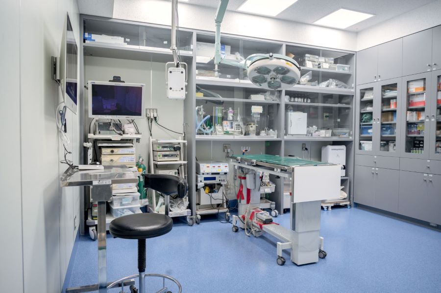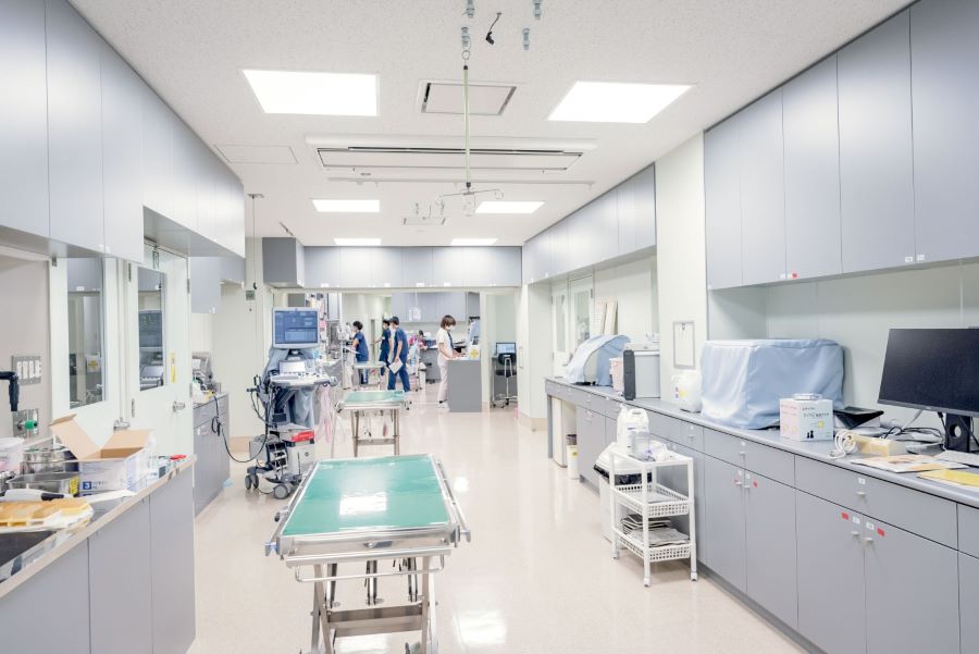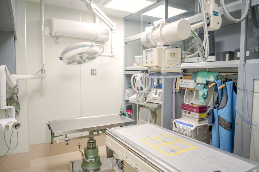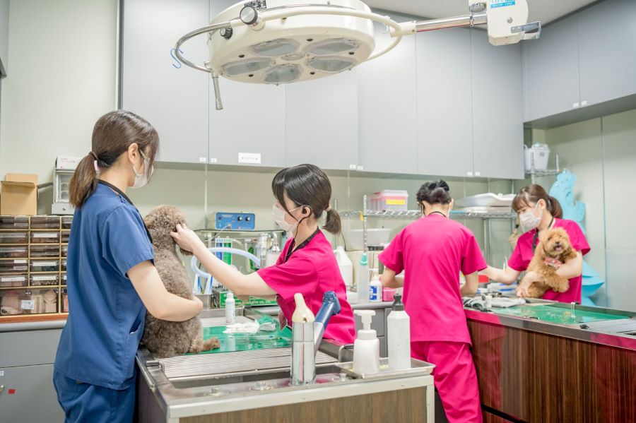 約80㎡の大きなフロアで獣医師や動物看護師が連携して様々な処置を行います。