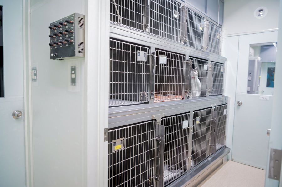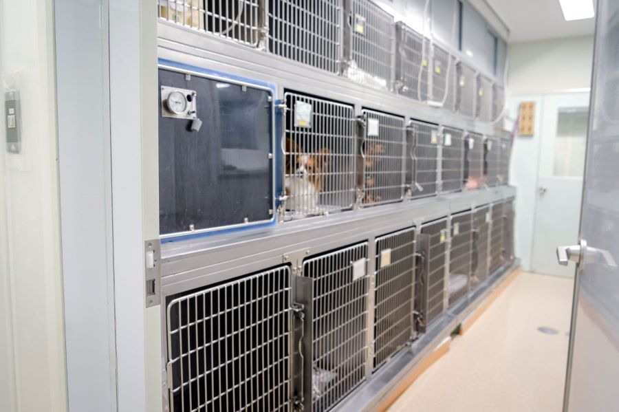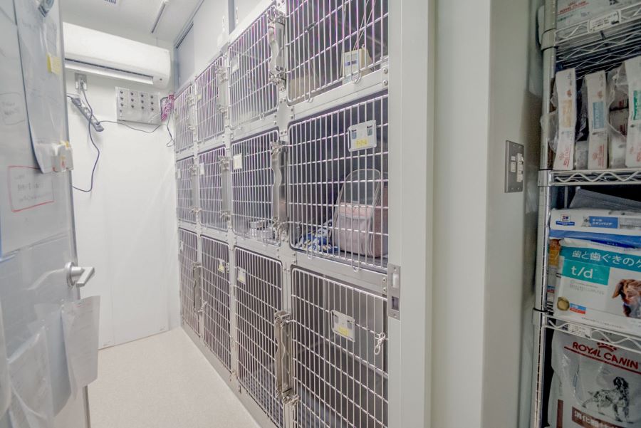 犬・猫それぞれに入院室をご用意しています。こちらは犬用の入院室です。