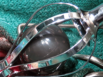 失明した緑内障犬に対しての慢性的な痛みをとる処置として、眼球摘出か、シリコン義眼挿入術を行う必要があることを患者様に説明したところ、シリコン義眼挿入術をご希望されました。